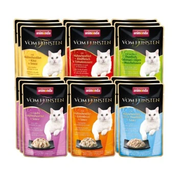 Die Produktfamilie Animonda Vom Feinsten mit feinen Filets im Frischebeutel steht für kulinarische Leckerbissen auf höchstem Niveau für ausgewachsene Katzen. Zarte Streifen aus feinstem Filet kombiniert mit exquisiten Beilagen wie Rindfleisch, Calamari oder Käse in feinsten Saucen garantieren einen unergleichlichen Genuß.