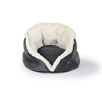 Die Bettinnenseite und die andere Kissenseite sind mit einem flauschigen, hellen Plüschstoff überzogen, der den Liegeplatz zu einem gemütlichen Erholungsort für deinen kleinen Vierbeiner macht. Die Höhle beeindruckt durch ihr modernes Design welches sich optimal in verschiedenste Einrichtungsstile integriert.