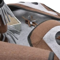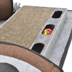 Lassen Sie Ihren vierbeinigen Liebling sich seine Leckereien verdienen. Verschiedenste Verstecke laden zum Suchen und Herumtollen ein. In jedem Tunnel, Turm oder Versteck sind Löcher eingelassen, sodass Ihre Katze mit der Pfote hindurch kommt und die integrierten Spielbüschel inkl. Glöckchen einfangen kann. Erleben Sie gemeinsame Stunden voller Spielspaß beim Kratzen, Suchen und Spielen. Fordern Sie Ihre Katze! Beschäftigung pur, durch aktives Spielen und Instinktförderung. Interaktives Spielen hat noch nie so viel Spaß gemacht! Und sollte mal nicht genügend Platz für den gesamten Spielteppich vorhanden sein, lässt sich das Kratzbrett inkl. Spielschiene vom Teppich lösen und einzeln verwenden. Als „kleiner Bruder“ des Activity Teppichs ist dieser Teppich auf Grund seiner Form hervorragend für die Verwendung in einer Zimmerecke geeignet!