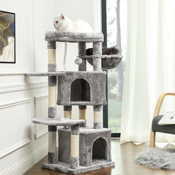 Verwöhnen Sie Ihre Katze mit diesem Kratzbaum, damit Sie sich nicht allein fühlen, auch wenn Sie außer Haus sind, sondern spielen und relaxen können