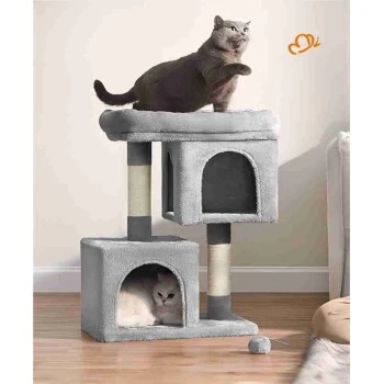 – Da Katzen gerne springen und spielen, befestigen Sie den Kratzbaum bitte mit dem mitgelieferten Kippschutz an der Wand, um ihn sicher zu verwenden.