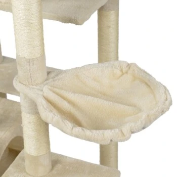 Der Kratzbaum ist gleichzeitig funktional und kompakt. Er zeichnet sich durch verschiedene Kletter-, Spiel- und Ruhebereiche aus. Ob hoch hinaus oder eher in Bodennähe, hier findet jeder Stubentiger seinen Lieblingsplatz.