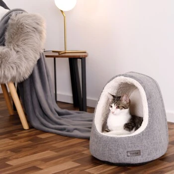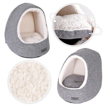 - IDEALER RÜCKZUGSORT Diese gemütliche Katzenhöhle aus meliertem Oxford-Stoff und weichem Plüsch bietet deiner Katze dank ihrer Form ein Gefühl von Sicherheit und viel Komfort während der Ruhephasen. Die ovale Eingangsöffnung bietet genug Platz für einen leichten Zugang zur Höhle