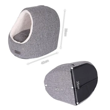 - RELEVANTE DATEN Diese Kuschelhöhle in den Außenmaßen 40x35x38 cm und den Farben Hellgrau und Dunkelgrau erhältlich