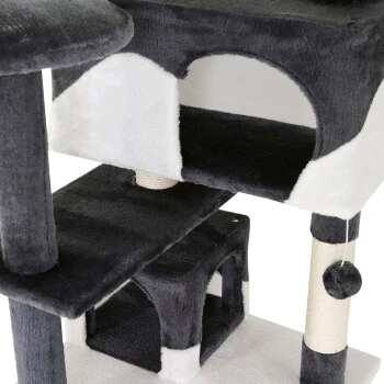 - KOMFORTZONE FÜR IHRE KATZE. Dieser Katzenkratzbaum mit weichem Plüsch und umfassenden Beschäftigungsmöglichkeiten ermöglicht artgerechtes Spielen, Ausruhen und Verstecken