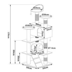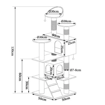 - MAßE & FARBEN. Dieses hochwertige Katzenzubehör verfügt über die Maße 50x50x130 cm, weitere Angaben sind der Skizze zu entnehmen. Der langlebige Kratzbaum ist in den Farben beige/weiß, braun/beige, grau/weiß und schwarz/weiß erhältlich