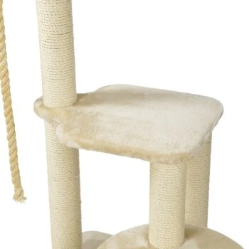 Der MORE FOR Kratzbaum Gaspar mit großer gepolsterter Liegefläche und einem Spielseil bietet Ihrer Katze Möglichkeiten zum Klettern, Spielen und Schlafen.