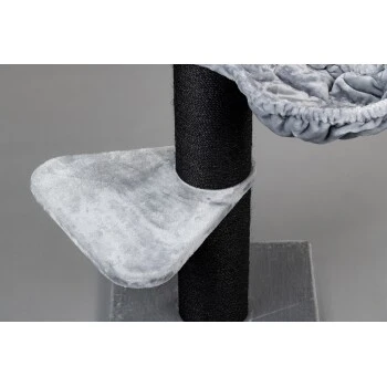 Ganz oben ist einen Liegeplatz mit herausnehmbares waschbares Kissen befestigt mit Klettverschluss. Die drehbare Liegemulde ist eine Kombination aus einer Hängematte und einem Kissen. Der Traum von jeder Katze! Diese Liegemulde wurde extra mit einem Metallrahmen verstärkt und auf eine Tragfähigkeit von 20kg getestet! Die gesteppte und gepolsterte Hängematte ist bekleidet mit extra weichem Plüsch so wie auch die Liegefläche unten.