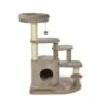 Ob verschmust oder verspielt, dieser Kratzbaum passt für jede Katze. Auch kleine oder ältere Katzen können Dank der Leiter hier spielend leicht den Aufstieg zur gemütlichen Höhle schaffen. Die starken Holme (Ø ca. 12 cm) laden regelrecht zum herumtoben und klettern ein. Danach kann auf der oben angebrachten runden Liegeplatte mit Halbrand (Ø ca. 45 x H12 cm) oder in der Hängemulde eine erholsame Pause eingehalten werden, bevor es zur nächsten Klettertour los geht. Alle Liegeflächen sind mit einem dichten, samtig-weichen Plüsch bezogen und die extra große Bodenplatte sorgt durch ihr hohes Eigengewicht für eine optimale Standsicherheit.